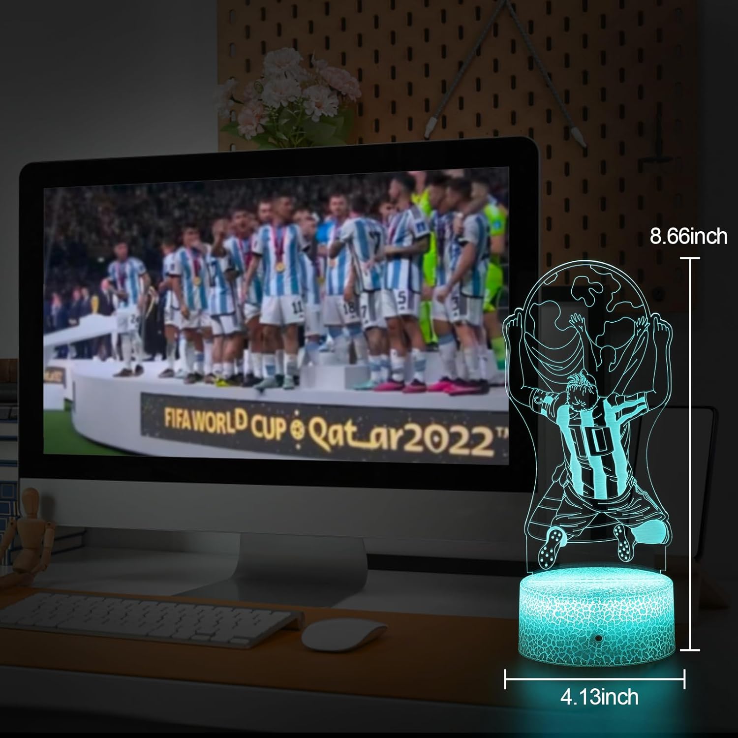 ⚽【Gift for Soccer fans】Who is the most popular football player today? Undoubtedly, this outstanding Argentine player. He led his teammates to win the World Cup and became an idol in the hearts of every young Soccer enthusiast. This creative and stunning Soccer night light is perfect as a birthday gift, Christmas gift, holiday gift, or graduation gift for football fans.