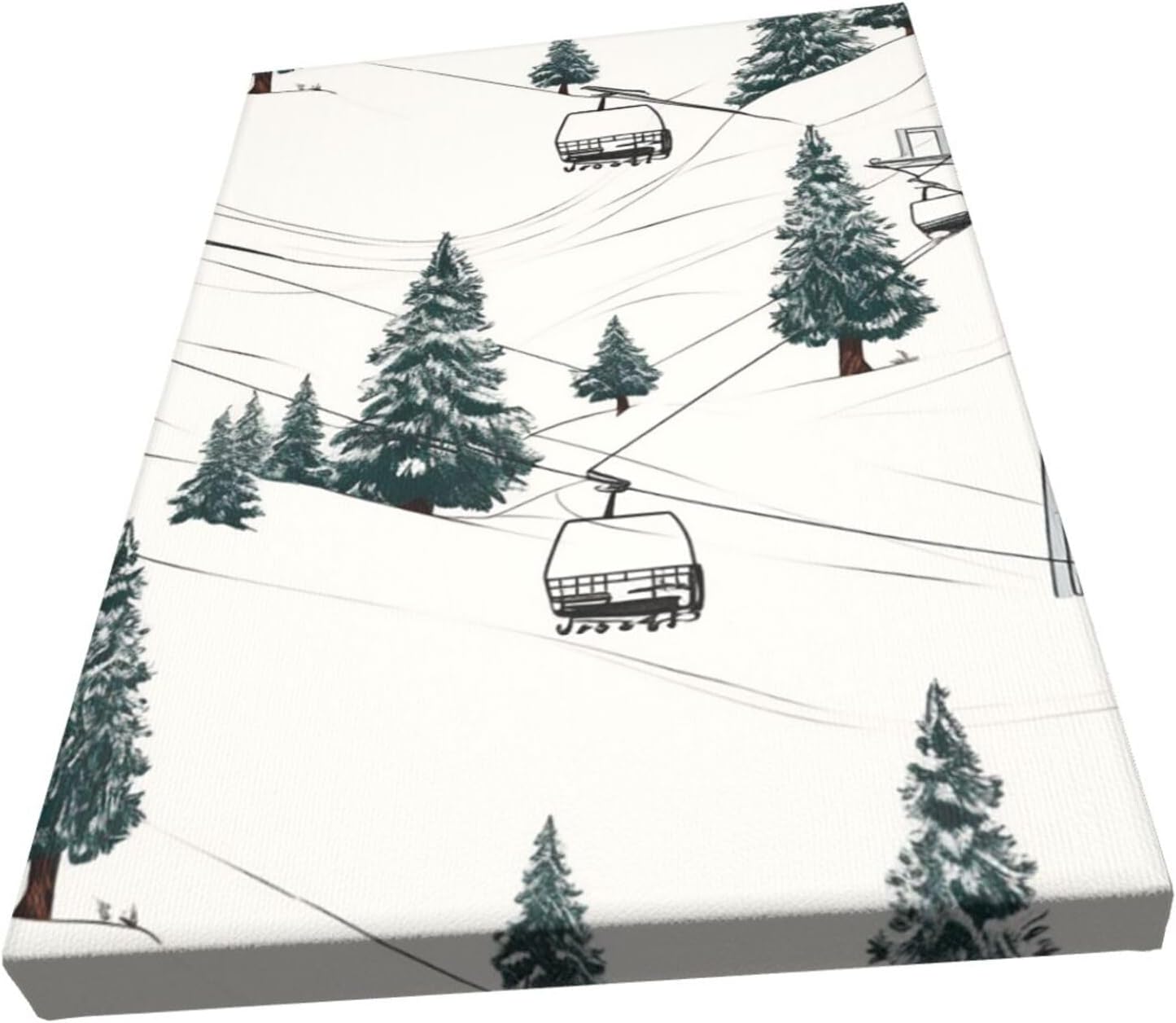 12″ x 18″ Canvas Wall Art for Bathroom Living Room Home Wall Decor Ready to Hang Artwork Painting Prints Modern Ski Lift With Fir Tree Wall Art Posters