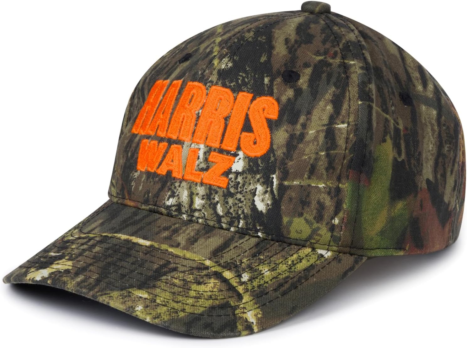 The standout feature of this hat is the bold “HARRIS WALZ” embroidery, done with over 13,000 stitches. Each hat is embroidered in Southern California by a female-owned small business, ensuring exceptional attention to detail. Made from a durable 60/40 cotton/poly blend, this cap combines global sourcing with local craftsmanship. The authentic Mossy Oak camo pattern adds a rugged, outdoorsy vibe, perfect for supporters, hunters, and outdoor enthusiasts alike.