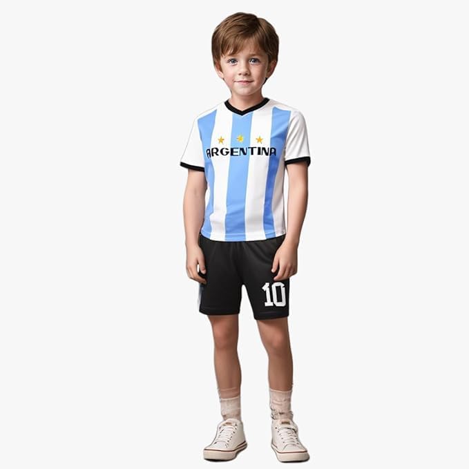 Calling all young soccer enthusiasts and sports fans! These vibrant and stylish soccer jerseys are the perfect addition to any kid’s wardrobe. Designed for boys aged 2-14 years, these jerseys are crafted with high-quality materials that ensure durability and comfort during intense training sessions or cheering on their favorite team. The breathable fabric allows for optimal air circulation, keeping your little athlete cool and dry even during the most rigorous matches. With a range of colors and team logos to choose from, your child can proudly represent their favorite club or sport their favorite hue. These jerseys are not just for the field; they also make a great casual outfit for sports-loving kids. Whether your child dreams of becoming a professional soccer player or simply enjoys the thrill of the game, these jerseys will inspire them to play with confidence and style. Grab one (or a few!) today and let your child’s passion for soccer shine through.