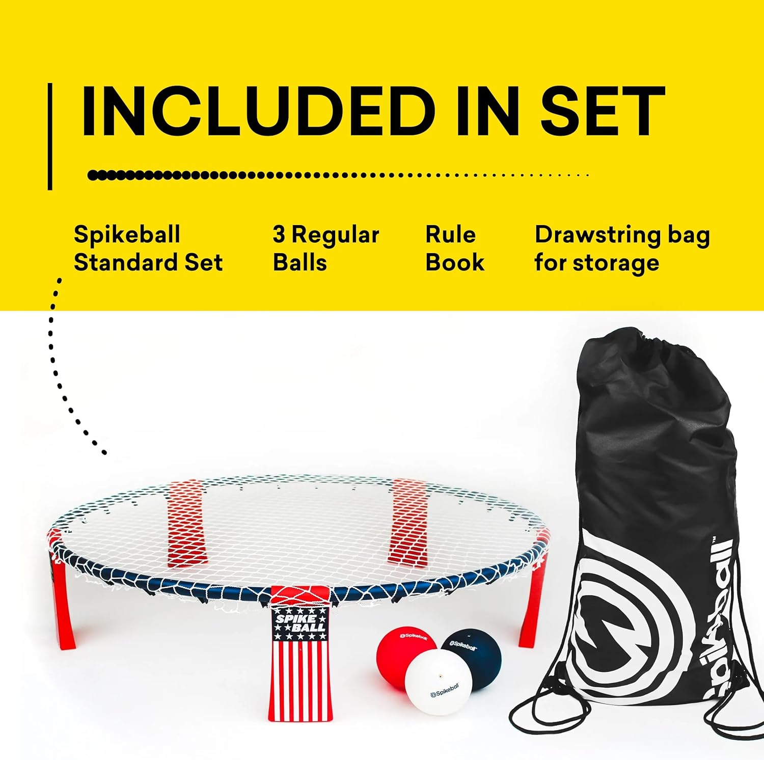 FOUR PLAYER ACTION – Spikeball is a fun, active, and competitive (if you want it to be) 2 on 2 outdoor indoor sports game played on college campuses, tailgates, the lawn, yard, backyard, beach or gym with rules kind of like volleyball.